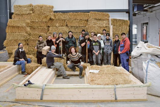 4. 08.01.18 dès 11h environ : remplissage des bottes de paille lors du montage du plancher sur sous-sol, 10 personnes
