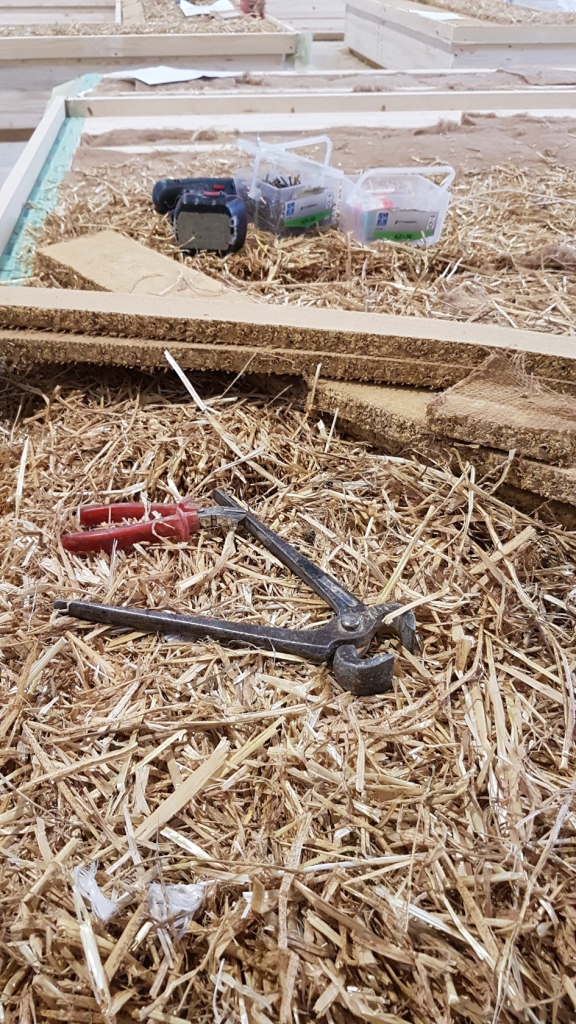 • les 3 petits chantiers participatifs en janvier 2018 lors de l'assemblage des parois et la création des planchers dans lesquels nous insérerons les bottes de paille. Idem pour la toiture :